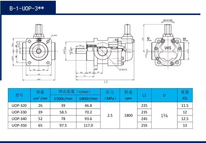 - UVS:系列代號(電機泵組一體潤滑泵)