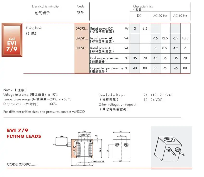 AMISCO電磁閥線圈 EVI 7/9 6VA/5VA/6.5W/3W AC220V DC24V