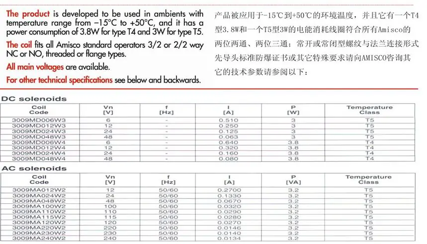 意大利AMISCO防爆線圈3009MD024W3 3009MA220W2