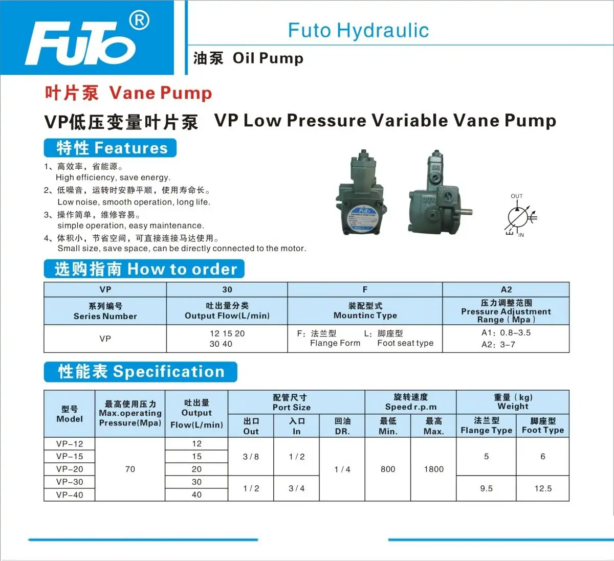 FUTO液壓變量葉片泵HVP-15/20/30/40-FA3平鍵花鍵油泵