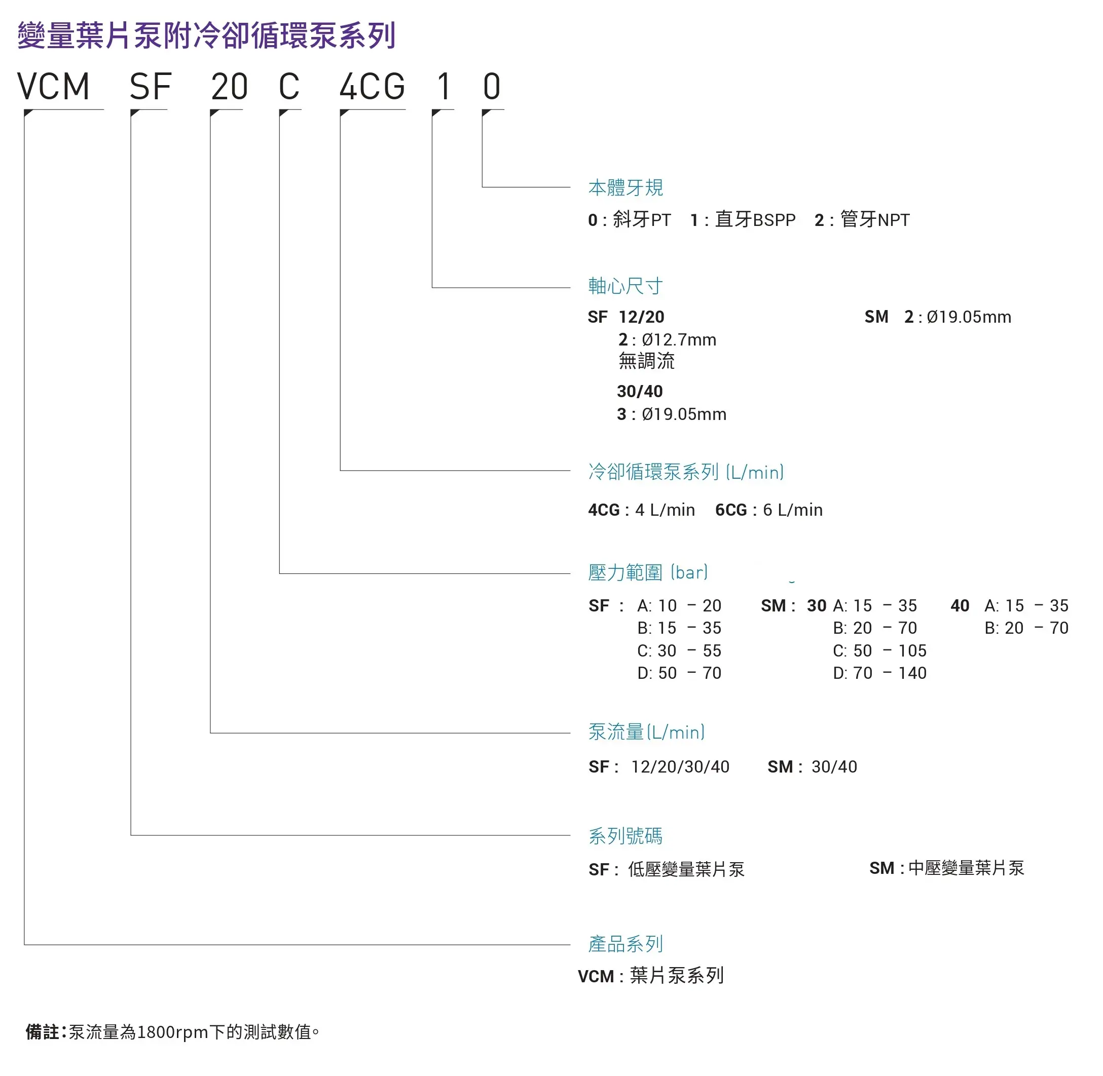 - 壓力 → 系統壓力≤210 bar