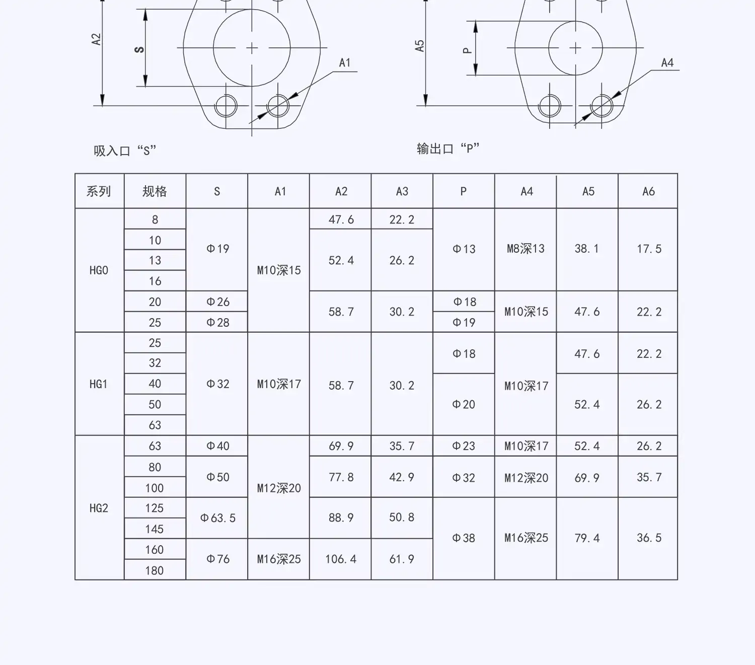 - 通用性強標準法蘭/軸伸,與威格士V系列通用安裝油口位置、旋向、軸型可選,適配多布局