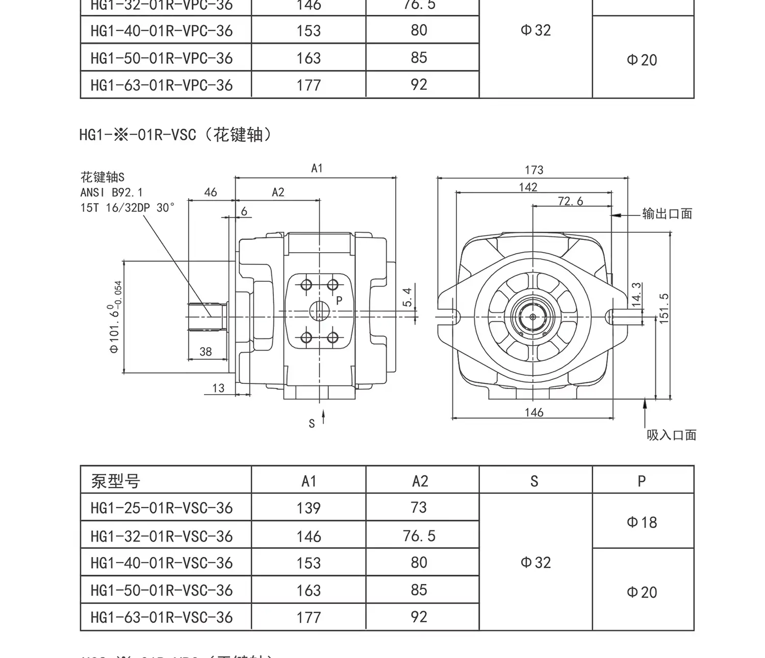 - 油口:進/出油均為 SAE 法蘭(大口徑吸油、小口徑壓油)